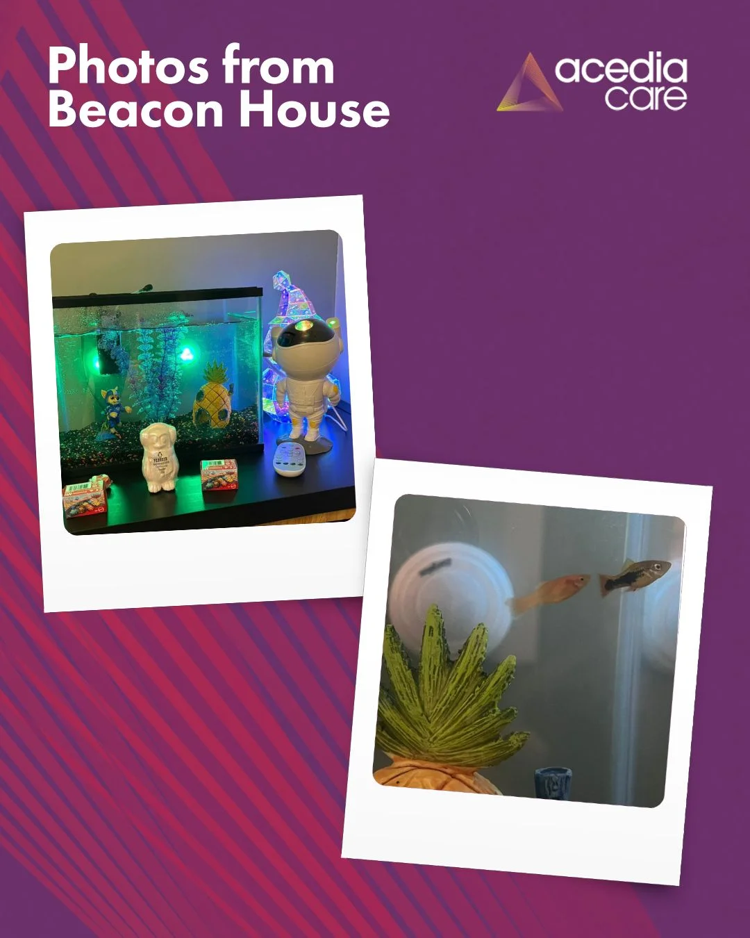 We’re very pleased to have McQueen and Mater the fish joining the home and hope our young person is enjoying their company.